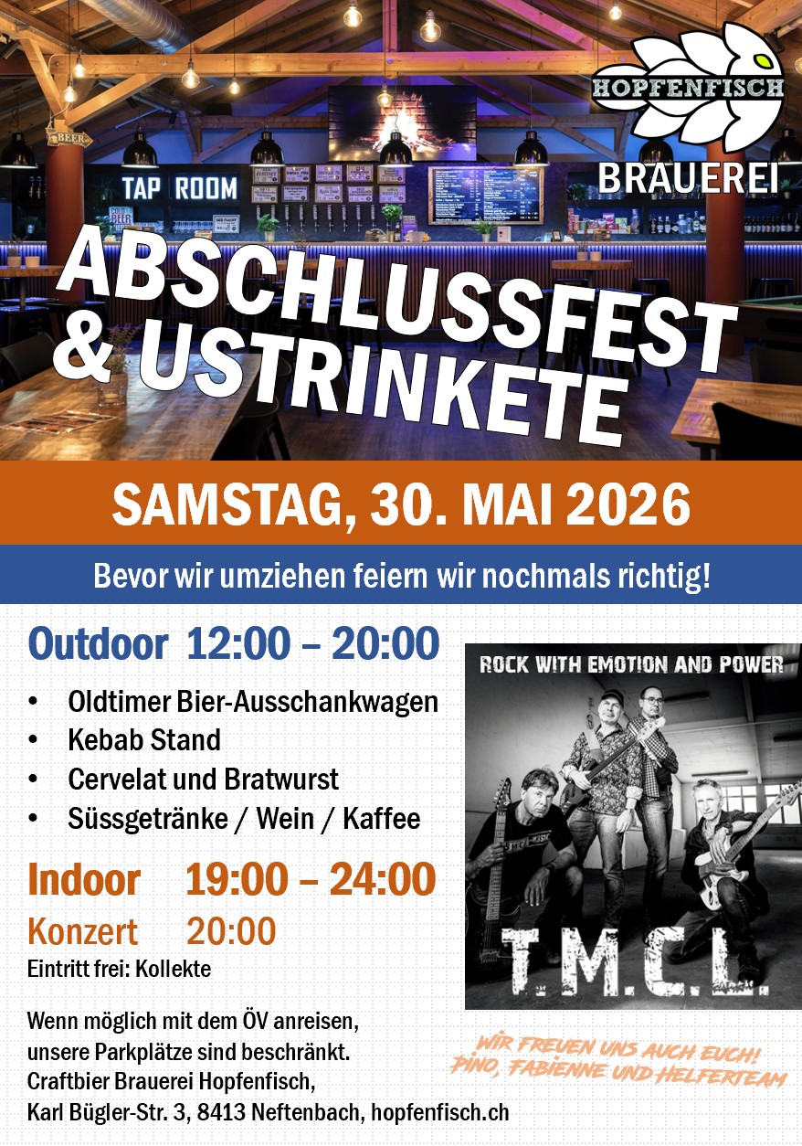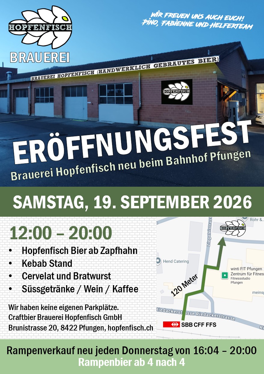 Brauerei Besichtigung und Degustation Auf Anfrage bieten wir ab 10 Personen ganzjährlich eine Brauerei Besichtigung mit Degustation inkl. Foodpairing an. Details dazu unter der Rubrik Führungen. Wir freuen uns auf deine Anfrage inkl. allen Details auf: fabienne@hopfenfisch.ch